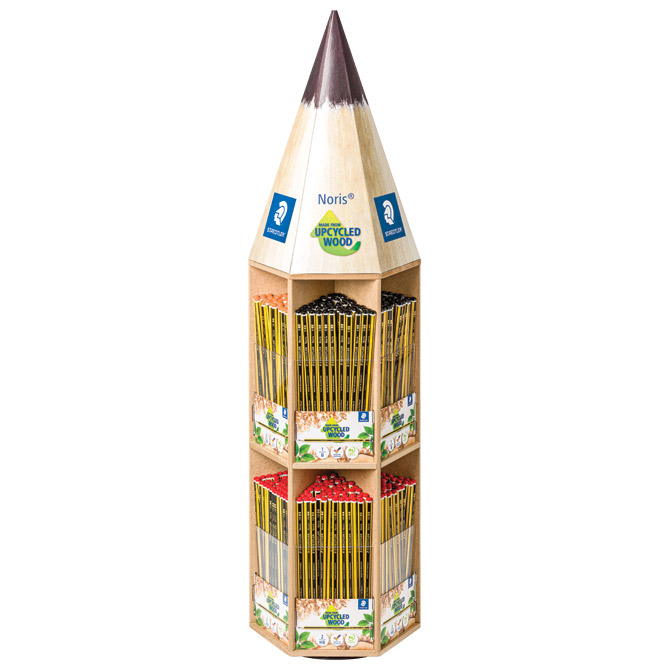 šiljena; bez gumice; vrhunske kvalitete; za pisanje, crtanje i skiciranje; lako se šilji; izuzetno otporna na lom; izrađena od certificiranog drva sadrži: 576 grafitnih olovaka: 288 x HB, 48 x 2B, 96 x B, 96 x H i 48 x 2H / dimenzija: 765× 205 mm (visina x fi); u obliku Noris olovke Pakiranje: 1/28