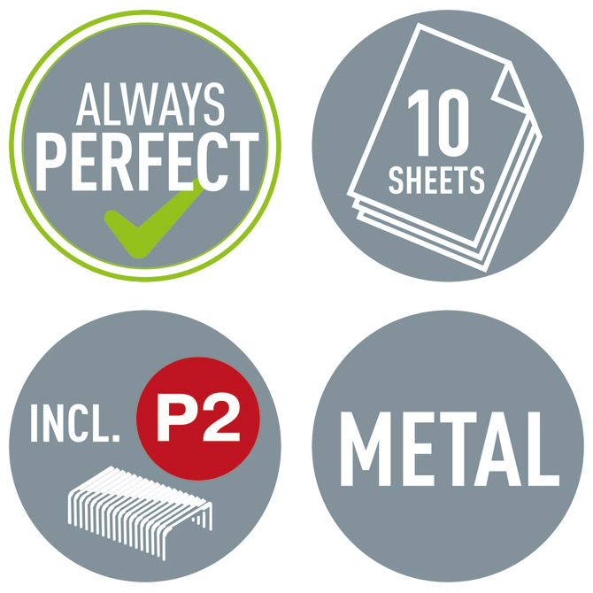 stolni; spaja do 1 mm debljine ili 10 listova papira 80 g/m2; dubina spajanja 50 mm; spajanje: zatvoreno klinasto; spajalice: 50 kom x br.10; garancija 3 godine