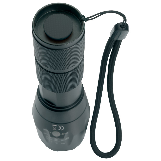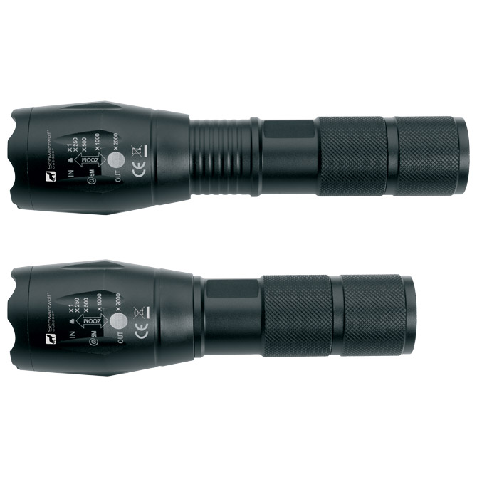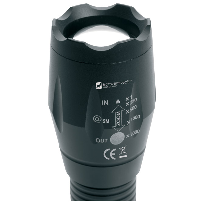 vanjska svjetiljka s narukvicom koja sadrži CREE T6 diodu. Pakirano u Schwarzwolf poklon kutiju. Jačina osvjetljenja: 260 lumena. . . Dimenzije: 13,5 × 3,5 cm, duljina istezanja 16 cm, remen za ručni zglob – 21 cm. Baterije 3 × AAA uključene. Pakiranje: 1