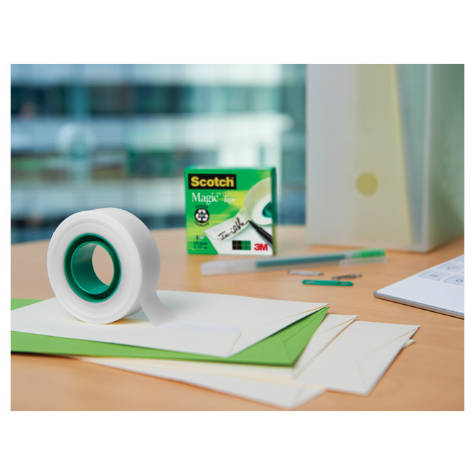 višenamjenska; nevidljiva; ne ostavlja vidljive tragove prilikom fotokopiranja; s vremenom ne žuti; može se po njoj pisati; odvaja se tiho i bez kidanja; kida se prstima; celulozni acetat dimenzija: 19 mm x 33 m; oznaka: 810; u kartonskoj kutiji Pakiranje: 1/12/144/10368