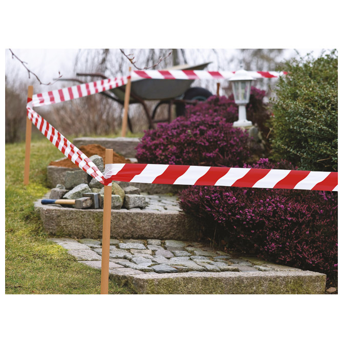 dimenzija: 80 mm x 100 m; nije ljepljiva; PE folija; za označavanje privremenih prepreka i opasnih područja; tiskana obostrano; tinta otporna na razmazivanje; otporna na UV zrake (3 mjeseca) Pakiranje: 1/4/20