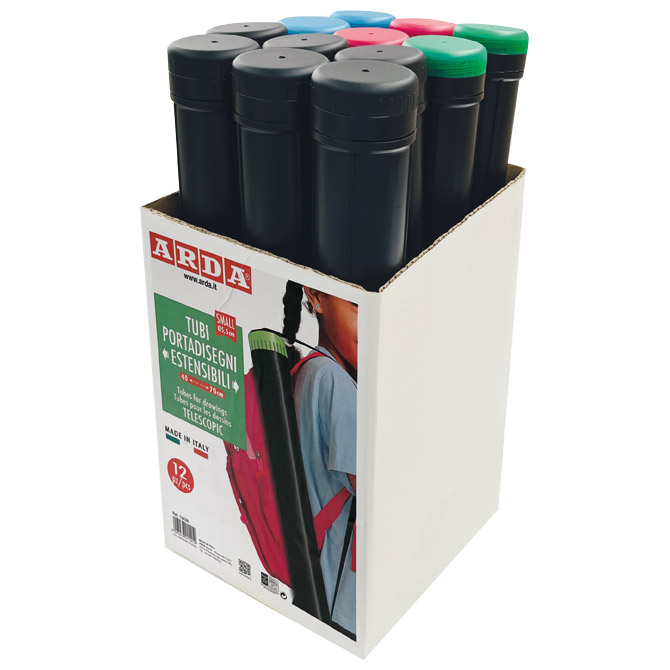 teleskopska s naramenicom (crna); PP; graničnik za razne formate; različite boje poklopaca: crna, crvena, plava i zelena 5,5 x 40-70 cm Pakiranje: 12