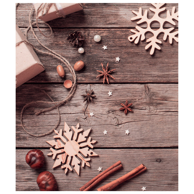 dimenzija motiva: 3 cm; za dekoriranje i izradu raznih ukrasa; u drvenoj kutiji dimenzije:10,5 x 10,5 cm; prednja strana je prekrivena folijom tako da se vide motivi; set od 45 komada (9 različitih motiva) pahulje Pakiranje: 1