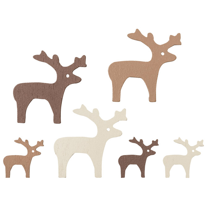 za dekoriranje i izradu raznih ukrasa; u drvenoj kutiji dimenzije:10,5× 10,5 cm; prednja strana je prekrivena folijom tako da se vide motivi; set od 54 komada; blister sob / 2,5 cm i 4,5 cm / 3 boje; boja slonovače, svijetlo smeđa i smeđa Pakiranje: 1/6