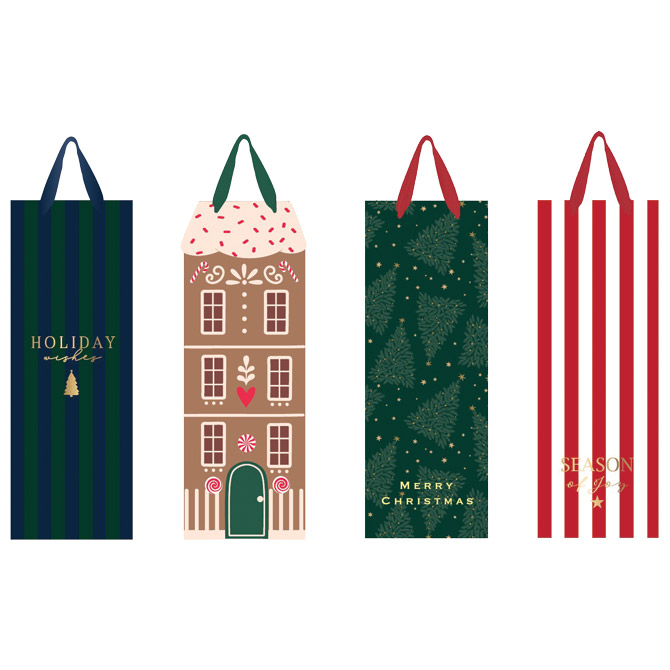 190 g; ručke: saten; ojačano dno; mat završna obrada s metalik detaljima; s privjesnicom; sort 4 motiva 13x36x10 cm Pakiranje: 1/12/144