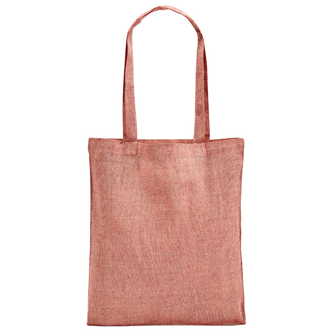 s recikliranim pamukom (70%), poliester (30% rPET) (140 g/m2) i ručkama od 60 cm. Reciklirani pamuk nije obojen. Sirovina se koristi u svom izvornom obliku i boji, bez upotrebe kemikalija za bojenje ili izbjeljivanje, što pridonosi manjem utjecaju na okoliš. 380 x 420 mm Pakiranje: 1/50/200