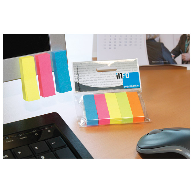 papir; za označavanje stranica i dokumenata; blister 15×50 mm; 5 boja x 100 zastavica / narančasta, plava, roza, zelena i žuta Pakiranje: 1/12