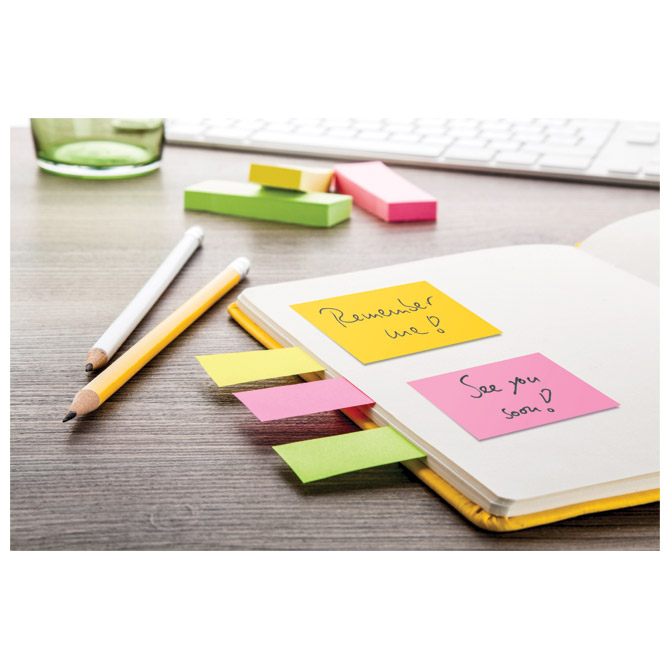 papir; za označavanje stranica i dokumenata; blister 25×75 mm / 3 boje x 100 zastavica / roza, zelena i žuta Pakiranje: 1/12