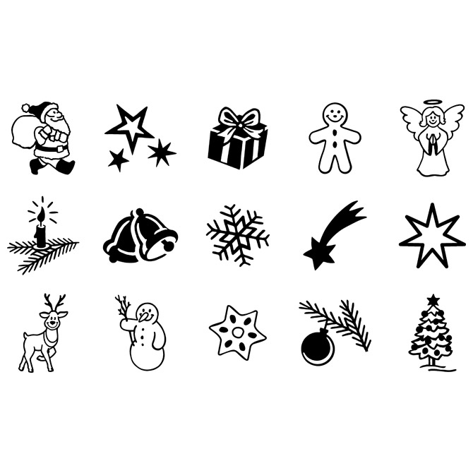 drveni; dimenzija: 2× 2 cm; sa jastučićem; dimenzija motiva: 1,5 x 1,5 cm; crna tinta (brzosušeća); za ukrašavanje papira, kartona i drugih sličnih materijala; idealno za: dekoriranje (poklona, kutija, staklenki..), izradu čestitki, pozivnica i raznih drugih rukotvorina; u platičnoj kutiji 15 različitih žigova Pakiranje: 1/6